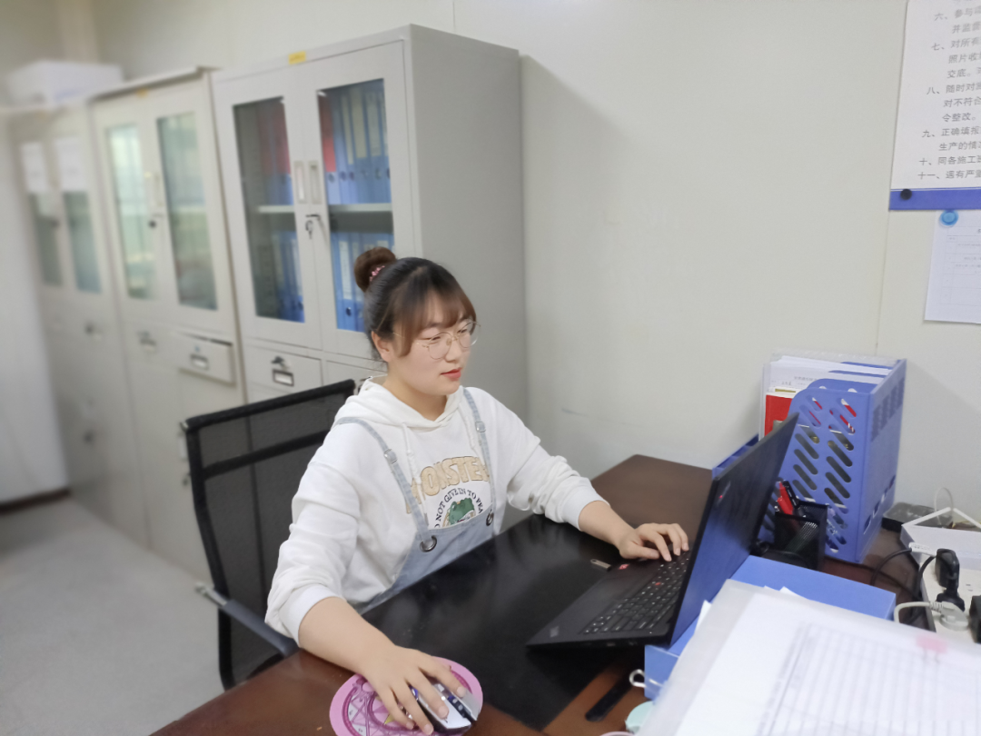 在项目大干快赶,抢抓工期时,她积极配合完成施工材料报验送检、试验检测、工序资料编制、资料移交等工作;组织项目办公及生活区域驻地建设,结合“我为群众办实事”,为项目职工准备加班餐及生活保障物资,切实为项目部职工创造良好的工作生活环境。