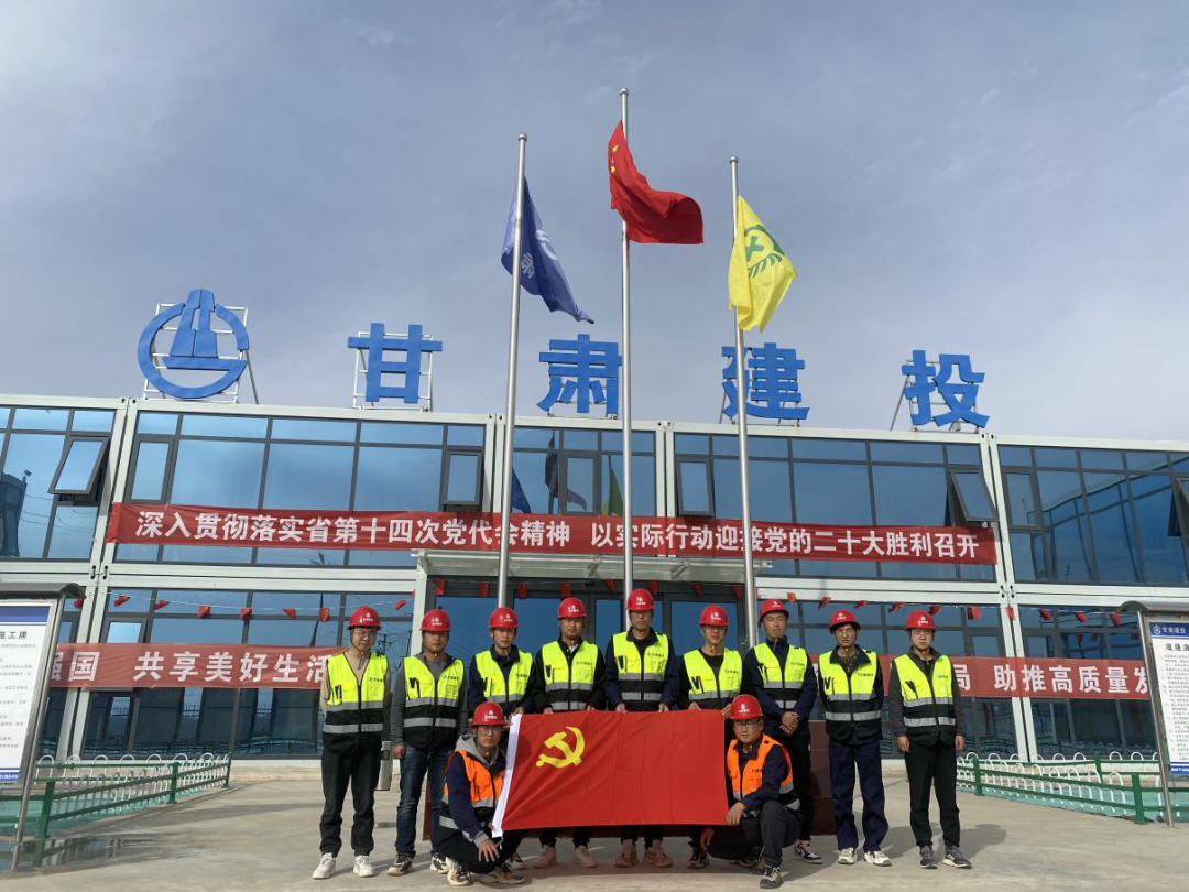 在党的二十大召开之际,四公司临夏市环城北路建设工程四区项目部职工集体与党旗合影。面对鲜红的党旗,他们态度坚定、慷慨激昂地说:党的旗帜永远飘扬在空中,为我们指引着前进道路。我们永远跟党走,因党的光辉历史;我们永远跟党走,因党的杰出贡献!中国,有了共产党,才有了坚定的希望信念,才有了今天的繁荣富强。我们坚信,在过去101年赢得了伟大胜利和荣光的中国共产党和中国人民,必将在新时代新征程上赢得更加伟大的胜利和荣光!我们会继续埋头苦干、勇毅前行,以实际行动迎接党的二十大胜利召开!