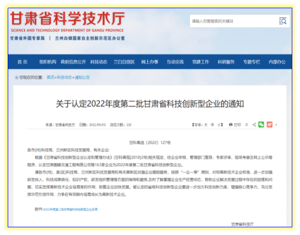 <meta name="keywords" content="科技,企业,路政,公司,创新型,通过,甘肃省,技术,创新" />