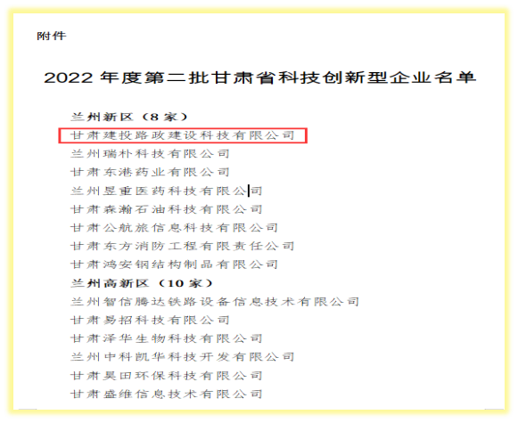 近日,2022年度第二批甘肃省科技创新型企业名单公布,伟德源自英国始于1946路政建设科技有限公司被认定为“甘肃省科技创新型企业”。