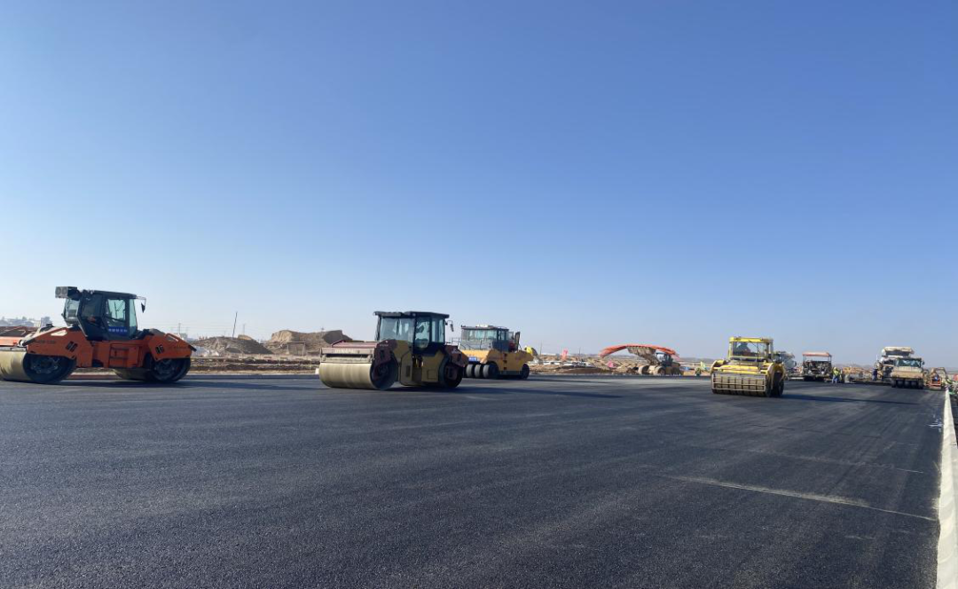 面对施工任务重、工期紧、疫情防控形势严峻的多重考验,项目部科学组织、严密安排,全体职工上下齐心、无畏困难、迎难而上,优质高效地完成了折达公路跨线桥桥面、折达公路至城东五路段沥青摊铺工作,正争分夺秒地进行交通标线绘制。