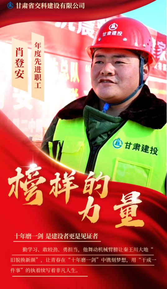 <p style="text-align: justify; text-indent: 2em;"><span style="font-family: 微软雅黑,Microsoft YaHei;">榜样是鲜活的价值观，有形的正能量，他们虽身处不同岗位，但为着同一个目标奋斗，在平凡中坚守初心，在坚守中绽放光芒，在高质量发展的新征程上，书写了无悔的奋进篇章。讲好交科故事，弘扬模范精神，交科公司推出“榜样的力量”栏目，今天，让我们走近先进典型，听听他们的故事！</span></p><p><br/></p><p style="text-align: center;"><img width="536" height="928" style="width: 443px; height: 751px;" src="../../hdupf/img/202404/20240419112611_923344.png"/></p><p style="margin: 0pt; text-align: justify; text-indent: 2em;"><span style="font-family: 微软雅黑,Microsoft YaHei; mso-spacerun: "yes"; mso-font-kerning: 1.0000pt;"><br/></span></p><p style="margin: 0pt; text-align: justify; text-indent: 2em;"><span style="font-family: 微软雅黑,Microsoft YaHei; mso-spacerun: "yes"; mso-font-kerning: 1.0000pt;">肖登安，2013年11月参加工作，现担任甘肃建投路政公司装载机司机。在项目施工中，他严格遵守机械操作规程，服从项目管理，踏实认真工作，苦练技能本领，十年来，第一批服务兰州新区发展建设的建设者中有他、第一支冲锋在前拉开项目建设的机械队伍中有他、第一个主动请缨前往积石山抗震救灾的建投青年中有他，他用十年磨一剑的韧劲，立志高远担大任，脚踏实地勇争先！</span></p><p style="margin: 0pt; text-align: justify; text-indent: 2em;"><span style="font-family: 微软雅黑,Microsoft YaHei; mso-spacerun: "yes"; mso-font-kerning: 1.0000pt;"><br/></span></p><p style="margin: 0pt; text-align: justify; text-indent: 2em;"><span style="font-family: 微软雅黑,Microsoft YaHei; mso-spacerun: "yes"; mso-font-kerning: 1.0000pt;">苦练技能本领 锤炼过硬素质</span></p><p style="margin: 0pt; text-align: justify; text-indent: 2em;"><span style="font-family: 微软雅黑,Microsoft YaHei; mso-spacerun: "yes"; mso-font-kerning: 1.0000pt;">如果说“十年磨一剑、干成一件事”，那么从一名初学者到成熟的“老司机”，肖登安便是凭着一腔干劲和韧劲，在机械操作手岗位工作中一路“摸爬滚打”，先后参与了兰州新区保障性住房建设项目A区、兰州新区纬一路东延长段、兰州新区纬五十四路、兰州银河国际地基处理工程、临夏环城北路等重点项目建设。勤学好问，善于思考，让他在各项目建设中，积累了经验，提升了技能，掌握了窍门，更是对自己的工作“斤斤计较”起来。</span></p><p style="margin: 0pt; text-align: justify; text-indent: 2em;"><span style="font-family: 微软雅黑,Microsoft YaHei; mso-spacerun: "yes"; mso-font-kerning: 1.0000pt;">“你就开个挖掘机，差不多铲平就行了，那么计较干嘛！”</span></p><p style="margin: 0pt; text-align: justify; text-indent: 2em;"><span style="font-family: 微软雅黑,Microsoft YaHei; mso-spacerun: "yes"; mso-font-kerning: 1.0000pt;">“差不就是差得多！平整度够嘛？深浅合适吗？你能保证一次性验收通过了？”</span></p><p style="margin: 0pt; text-align: justify; text-indent: 2em;"><span style="font-family: 微软雅黑,Microsoft YaHei; mso-spacerun: "yes"; mso-font-kerning: 1.0000pt;">肖登安凭借着认真负责的工作态度和高度的责任心，让经手的每一个项目土方场平等工作都实现了一次性验收通过，保障项目建设按工期计划顺利推进。而告诉笔者“要因为我的原因导致工期耽误了，我快找个地缝钻进去吧！”</span></p><p style="margin: 0pt; text-align: justify; text-indent: 2em;"><span style="font-family: 微软雅黑,Microsoft YaHei; mso-spacerun: "yes"; mso-font-kerning: 1.0000pt;"><br/></span></p><p style="margin: 0pt; text-align: justify; text-indent: 2em;"><span style="font-family: 微软雅黑,Microsoft YaHei; mso-spacerun: "yes"; mso-font-kerning: 1.0000pt;">勇挑重担敢担当 真抓实干善作为</span></p><p style="margin: 0pt; text-align: justify; text-indent: 2em;"><span style="font-family: 微软雅黑,Microsoft YaHei; mso-spacerun: "yes"; mso-font-kerning: 1.0000pt;">积石山地震发生后，肖登安与公司第一批抗震救灾队员们第一时间抵达受灾现场。“当地昼夜温差极大，凌晨收工后只能在零下十几度的车里短暂休息！”所有队员们并没有因为条件艰苦而退缩，他和大家一样，心里只想着怎么能让灾区的老百姓们渡过难关！</span></p><p style="margin: 0pt; text-align: justify; text-indent: 2em;"><span style="font-family: 微软雅黑,Microsoft YaHei; mso-spacerun: "yes"; mso-font-kerning: 1.0000pt;">连续几天灾区余震不断，导致已出现倒塌、裂缝的民房危险系数进一步加大，为保障灾区群众生命安全、畅通救援通道，肖登安和队员们接到紧急任务后，率先处置完成石塬镇肖红坪村、陶家村坍塌民房和危房20余间，及时消除受灾群众安全隐患，打通灾民集中聚居地交通动脉，为抢险救灾物资运送、周边百姓正常通行提供了有力保障，加速救援工作的快速推进。</span></p><p style="margin: 0pt; text-align: justify; text-indent: 2em;"><span style="font-family: 微软雅黑,Microsoft YaHei; mso-spacerun: "yes"; mso-font-kerning: 1.0000pt;">在顺利完成积石山石塬乡肖红坪村、陶家村2000余平方米场平作业任务，他和队友们全力克服泥浆层厚、冻土层夹杂等不利因素影响，连续昼夜施工，为安置点建设工作争取到宝贵救援时间，提前为移动安置板房搭建腾出了工作面，确保后续救援工作安全有序推进，率先完成安置点建设任务，确保了800余名受灾群众及时得到妥善安置。</span></p><p style="margin: 0pt; text-align: justify; text