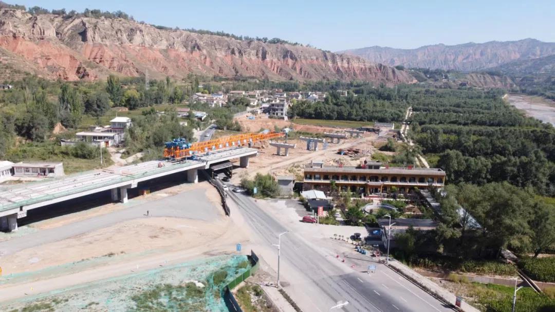 临夏市环城北路建设工程四区项目折达公路跨线桥成功跨越郊区公路