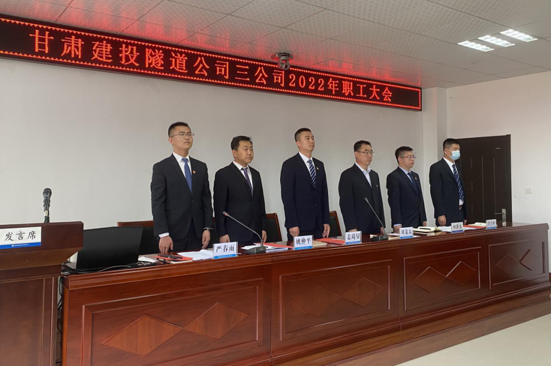 4月25日上午,隧道公司三公司2022年职工大会顺利召开。隧道公司党委书记、董事长刘文太,党委组织部(人力资源部)部长田彦龙及三公司全体干部职工参会。