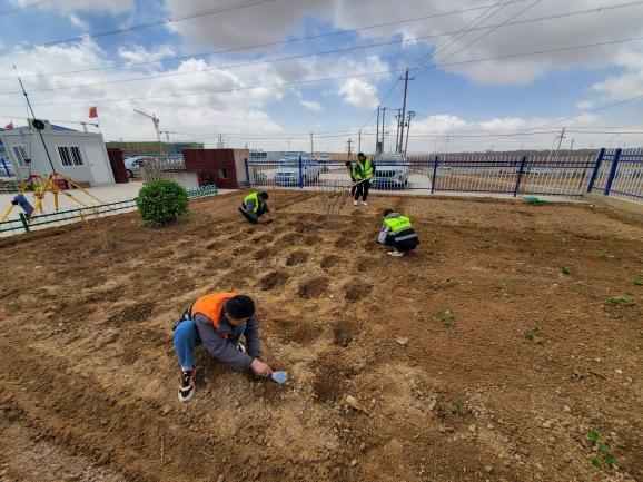 夏日初始溢芬芳,花红柳绿相争艳。为大力弘扬劳动精神,推进项目“家文化”建设,增强项目职工的幸福感和归属感,矿产园区西路项目部组织职工利用业余时间,在项目部驻地空闲余地翻地、播种、浇水,共同打造了一片“绿色园地”。