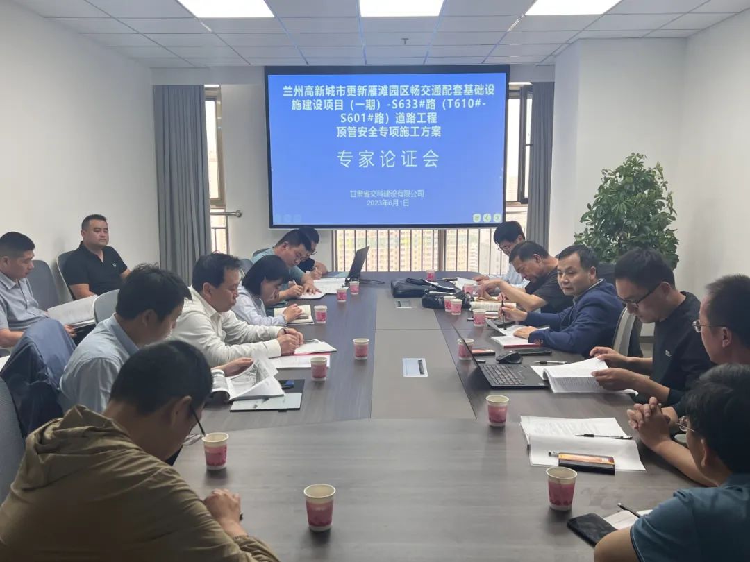 6月1日下午,交科公司三公司兰州高新城市更新雁滩园区畅交通配套基础设施建设项目(一期)-S633#(T610#-S601#路)道路工程项目就《雨水、污水顶管安全专项施工方案》组织召开超危大工程专家论证会。专家组由兰州市建设工程安全质量专家库5名专家组成,项目建设、设计、勘察、监理及施工单位相关负责人参与论证交流。