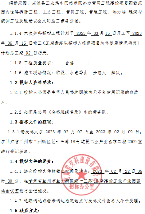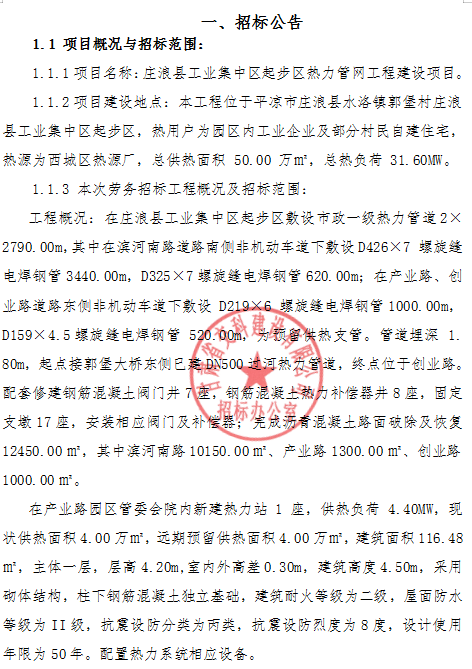 庄浪县工业集中区起步区热力管网工程建设项目