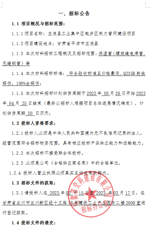 庄浪县工业集中区起步区热力管网建设项目-招标公告