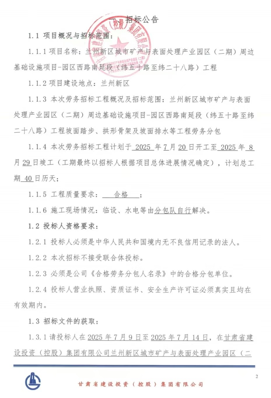 兰州新区城市矿产与表面处理产业园区(二期)周边基础设施项目-园区西路南延段(纬五十路至纬二十八路)-园区西路南延段(纬五十路至纬二十八路)—劳务分包